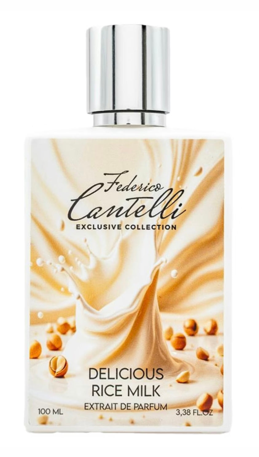 Delicious Rice Milk envelops the senses with its creamy blend of rice milk and oats, offering a soft and clean sweetness. White flowers and green leaves add an airy elegance, while hazelnut and vanilla provide a warm, cozy touch. Light woods wrap it all together, creating a gourmand fragrance that wears like a tender caress on the skin.